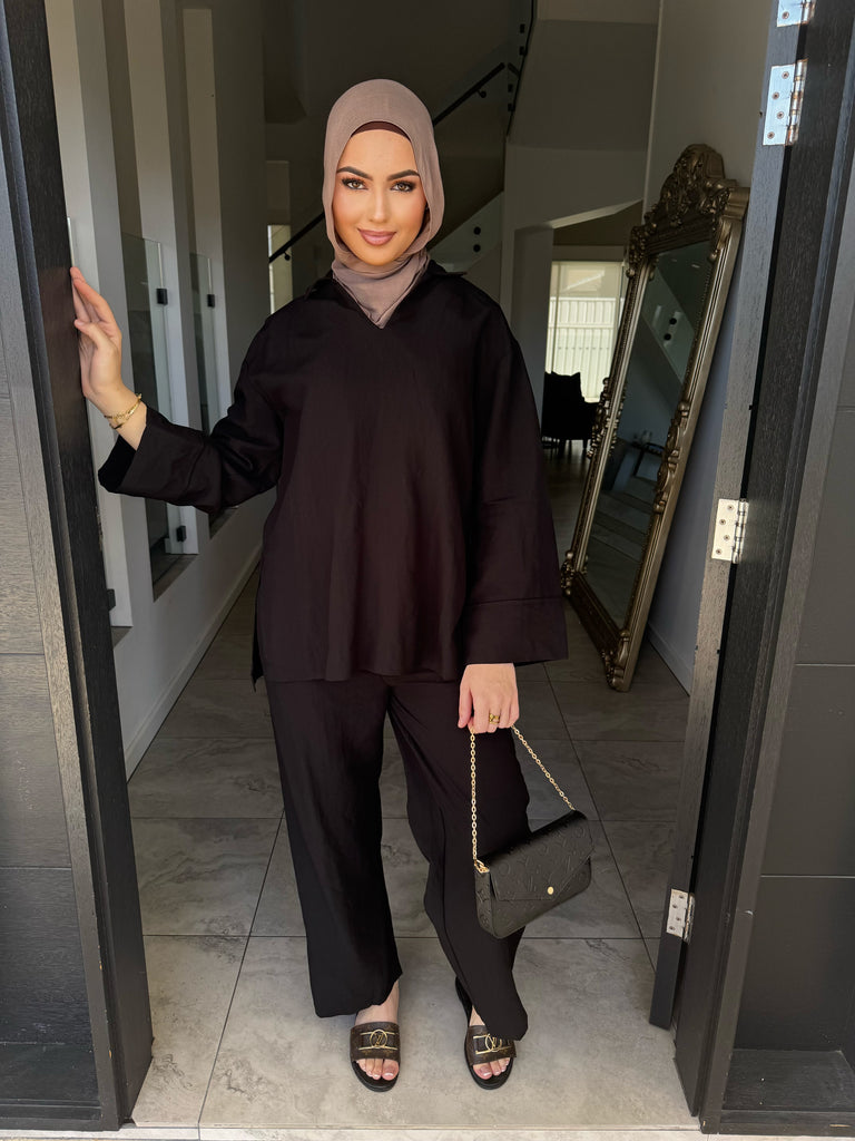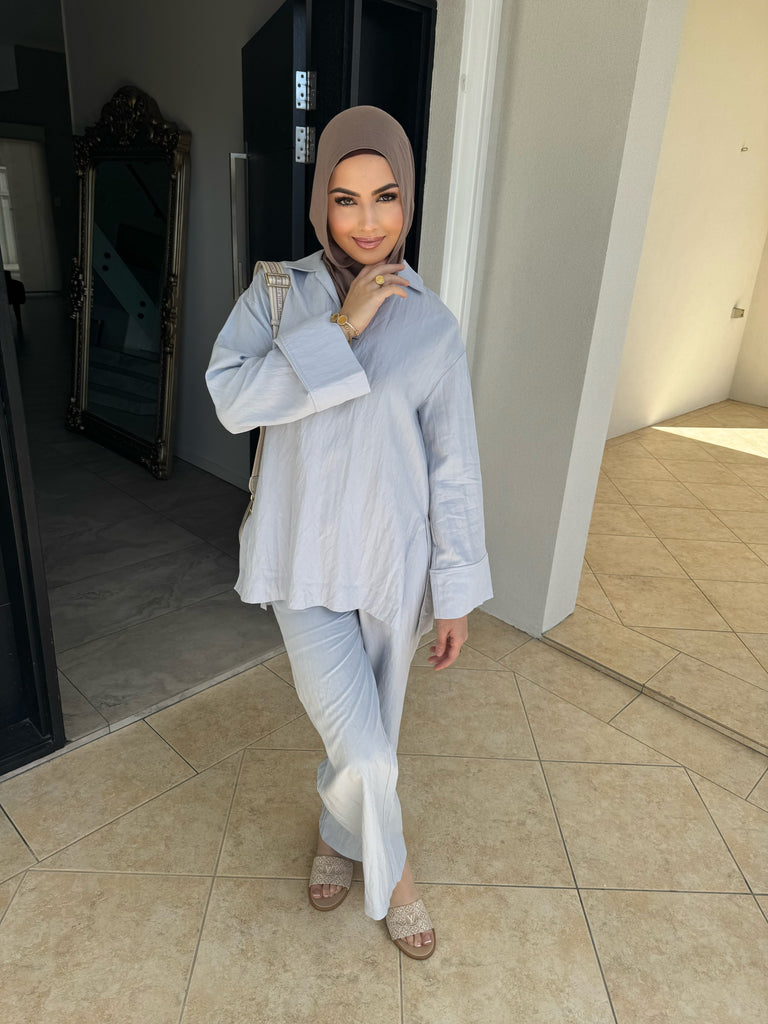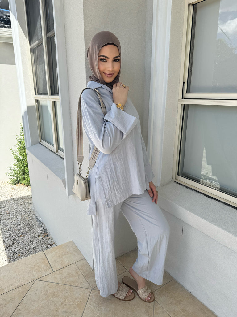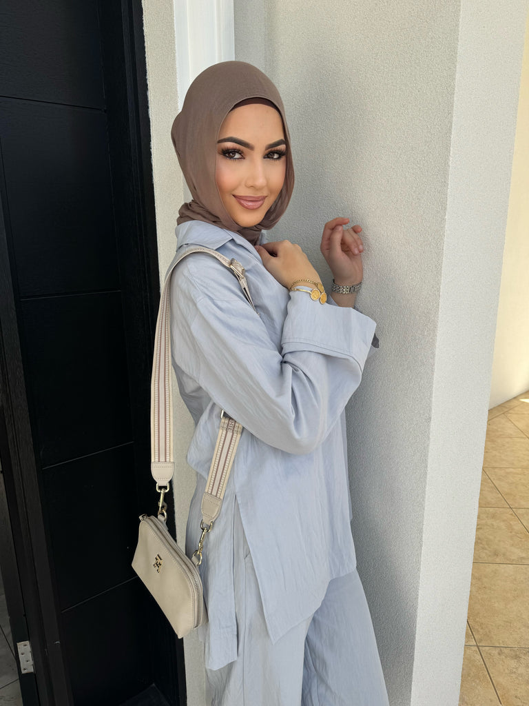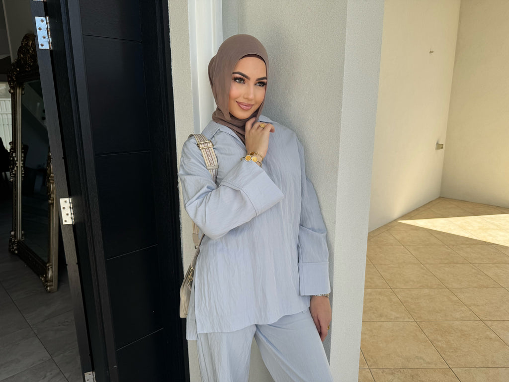features a collar and split sides