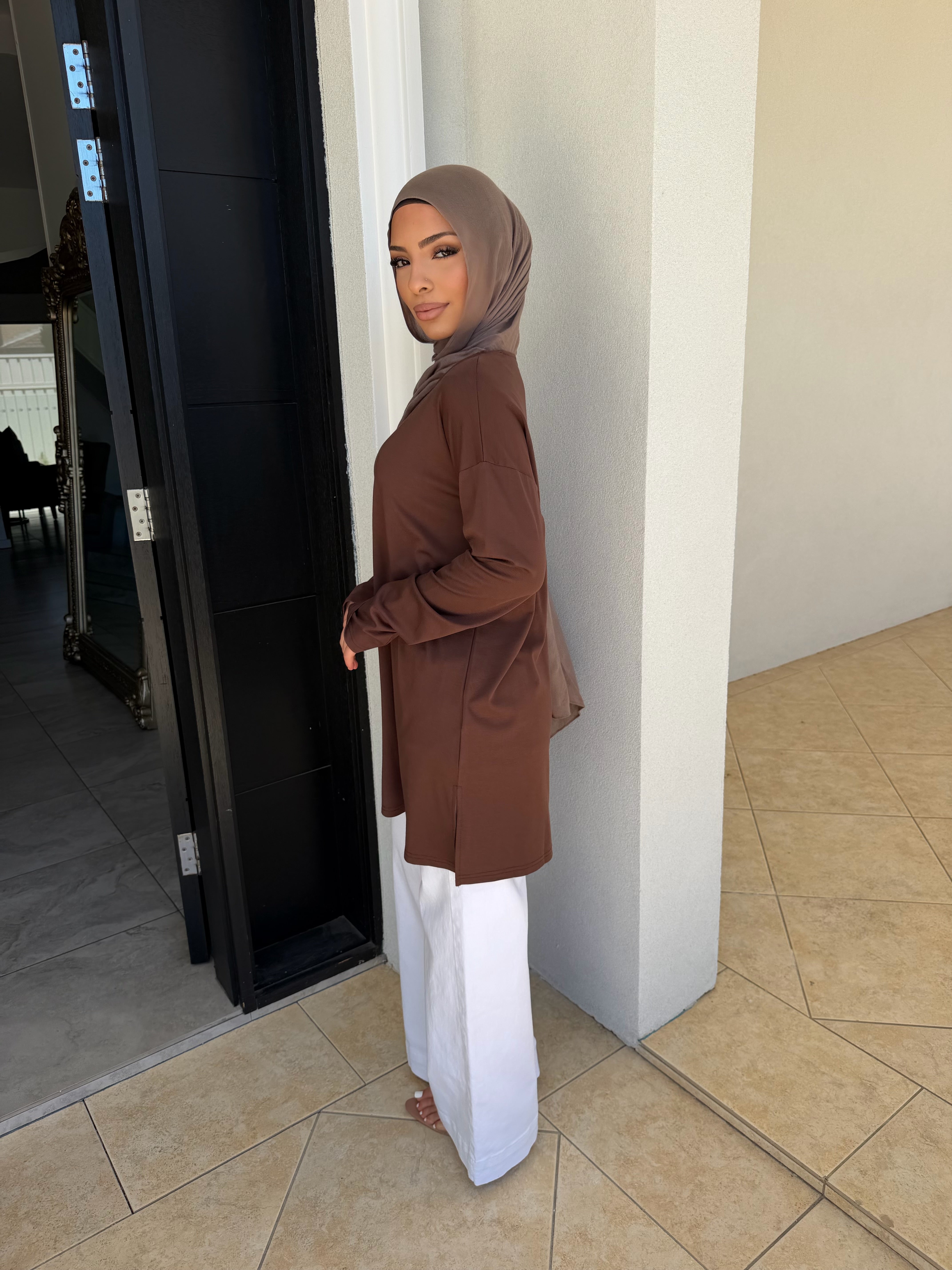 Split basic top PW2316 - Brown / 6 is backordered and will ship as soon as it is back in stock.