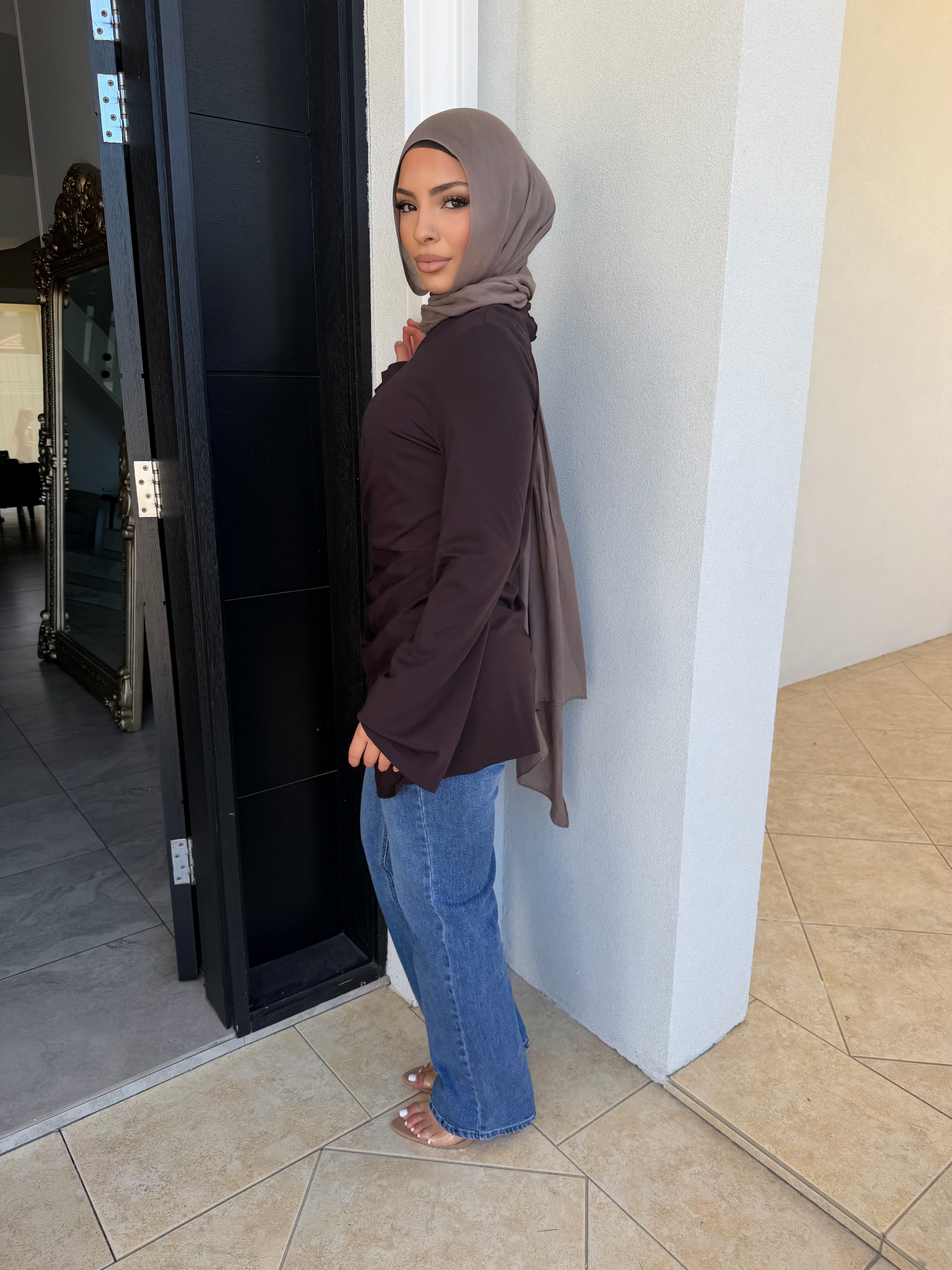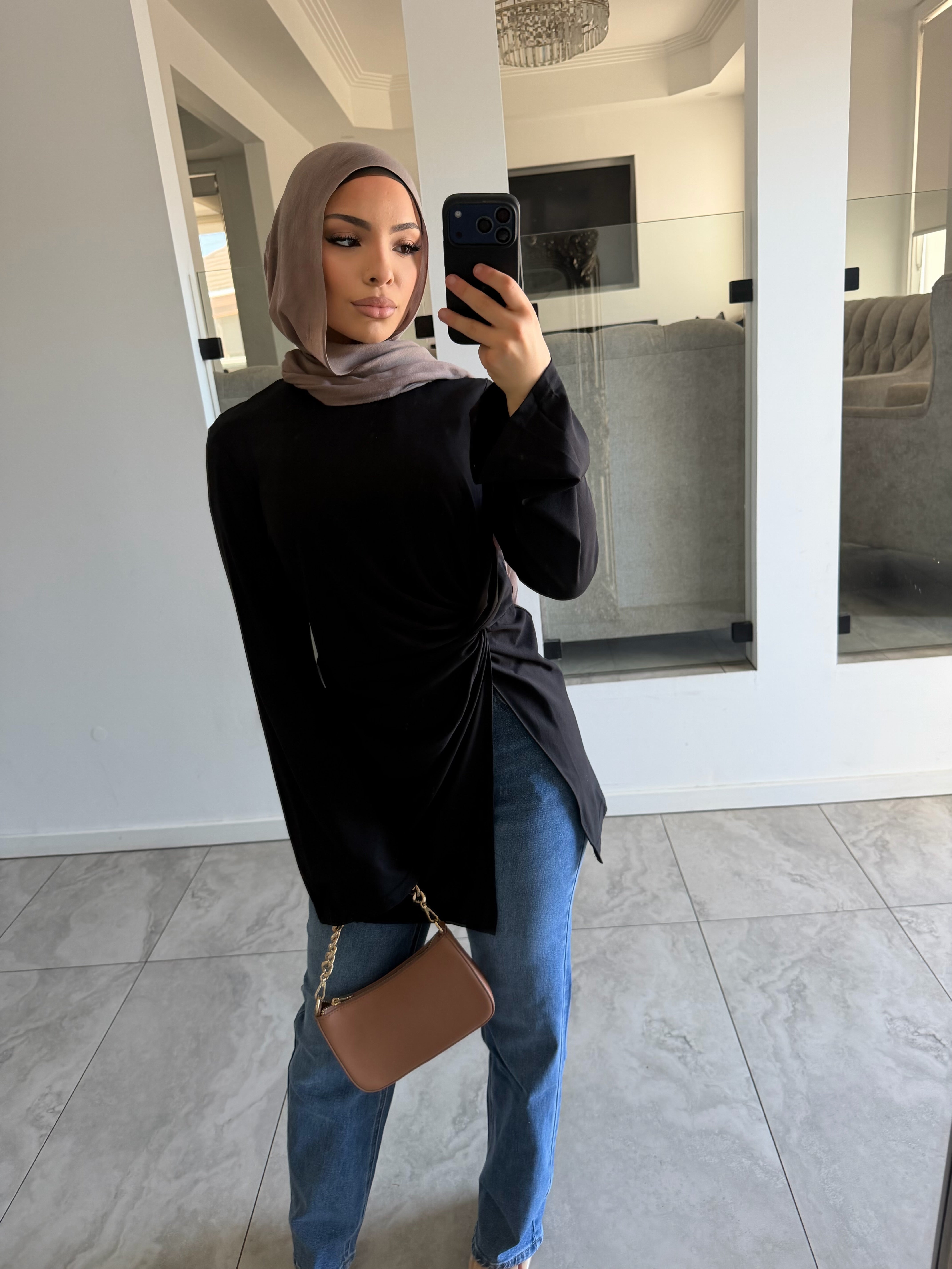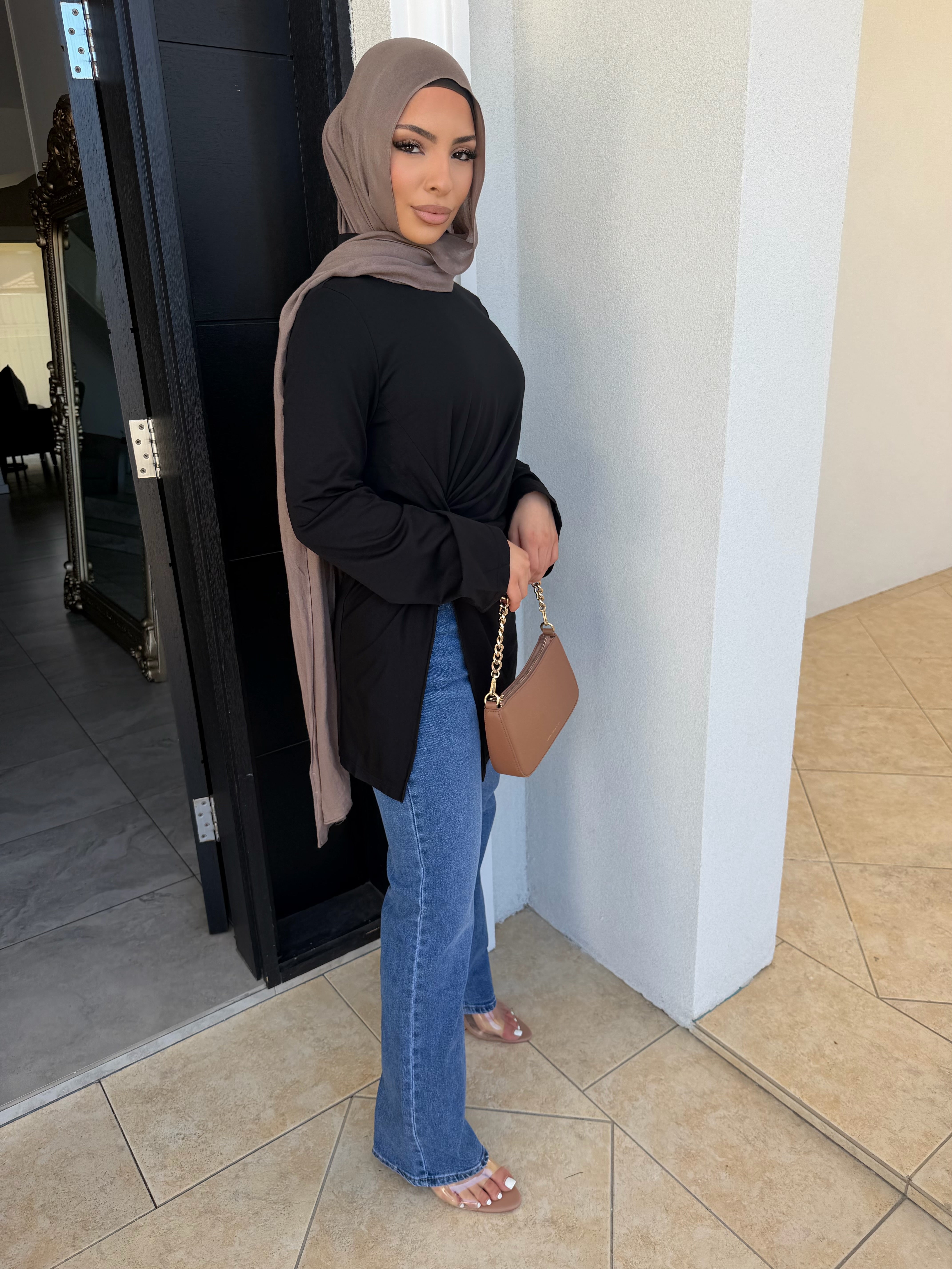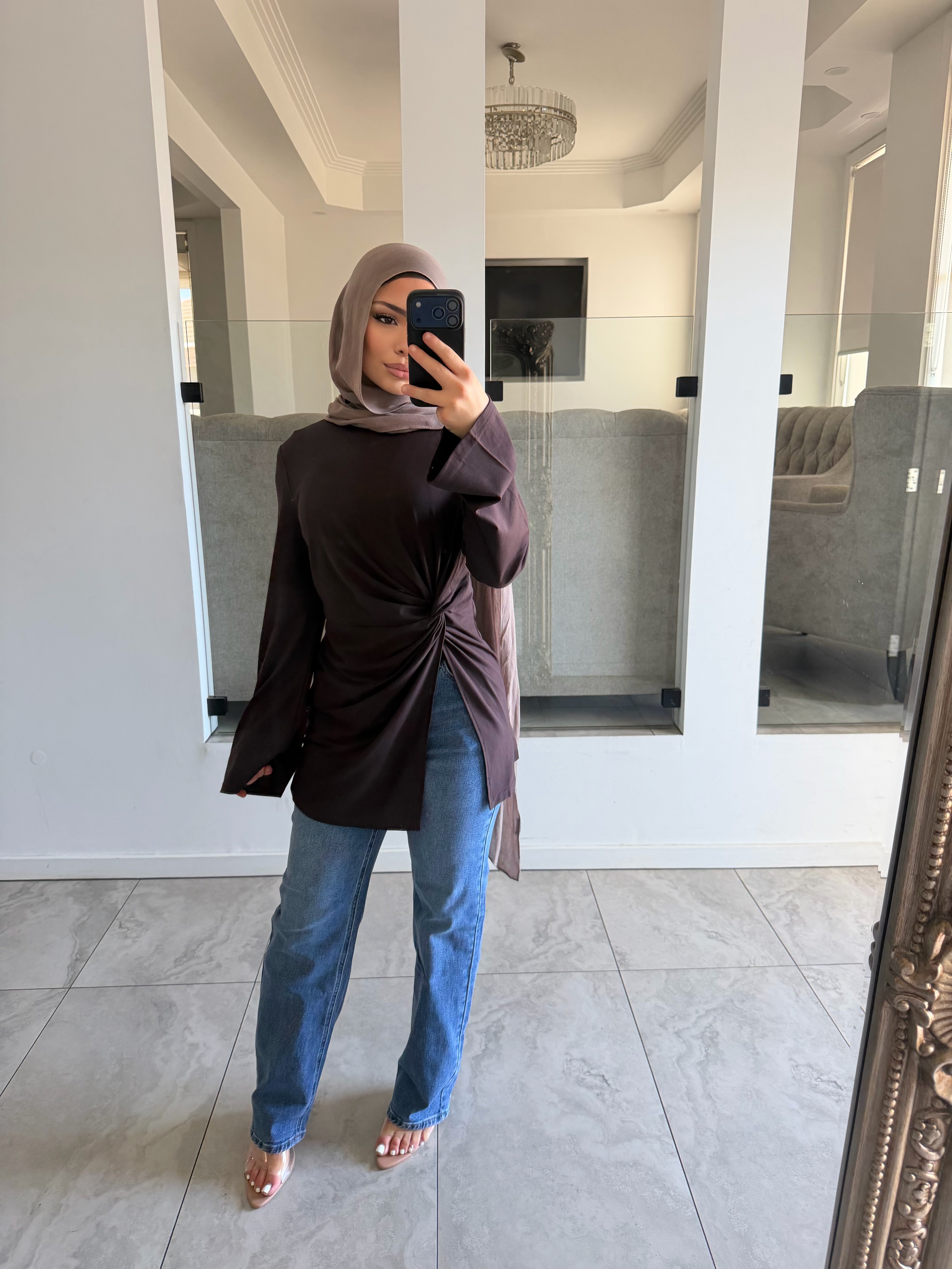 Stretch light ponte knot top with split