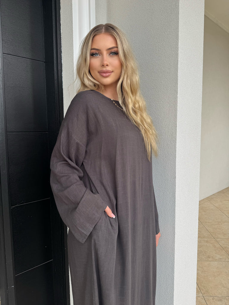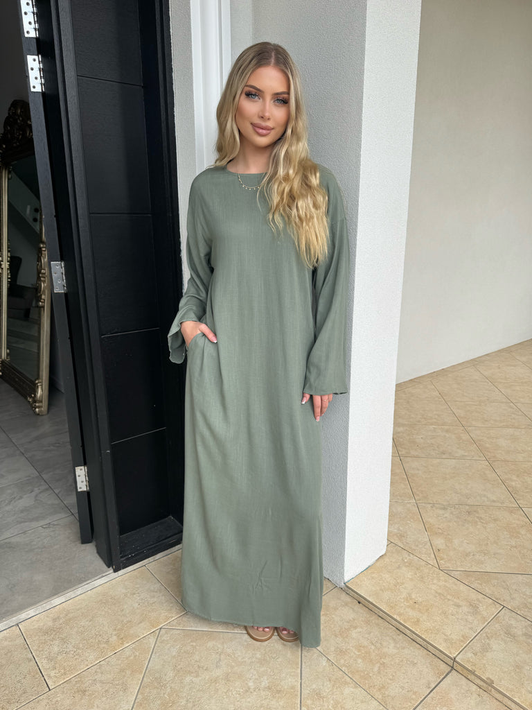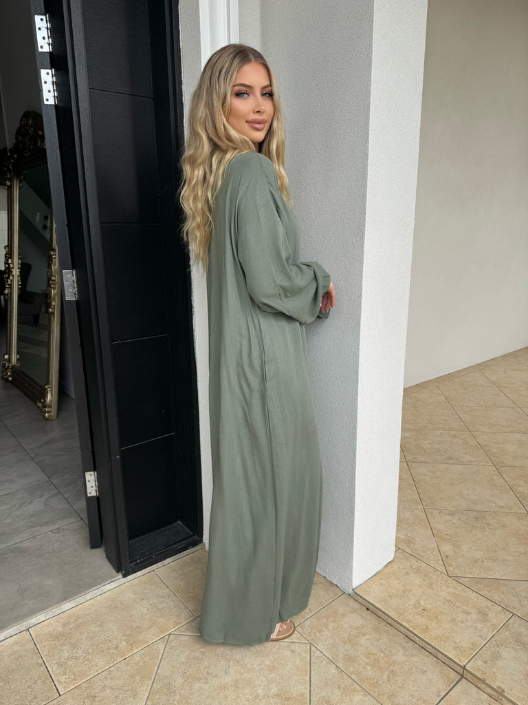 Summer linen abaya - Sage / S-8 is backordered and will ship as soon as it is back in stock.