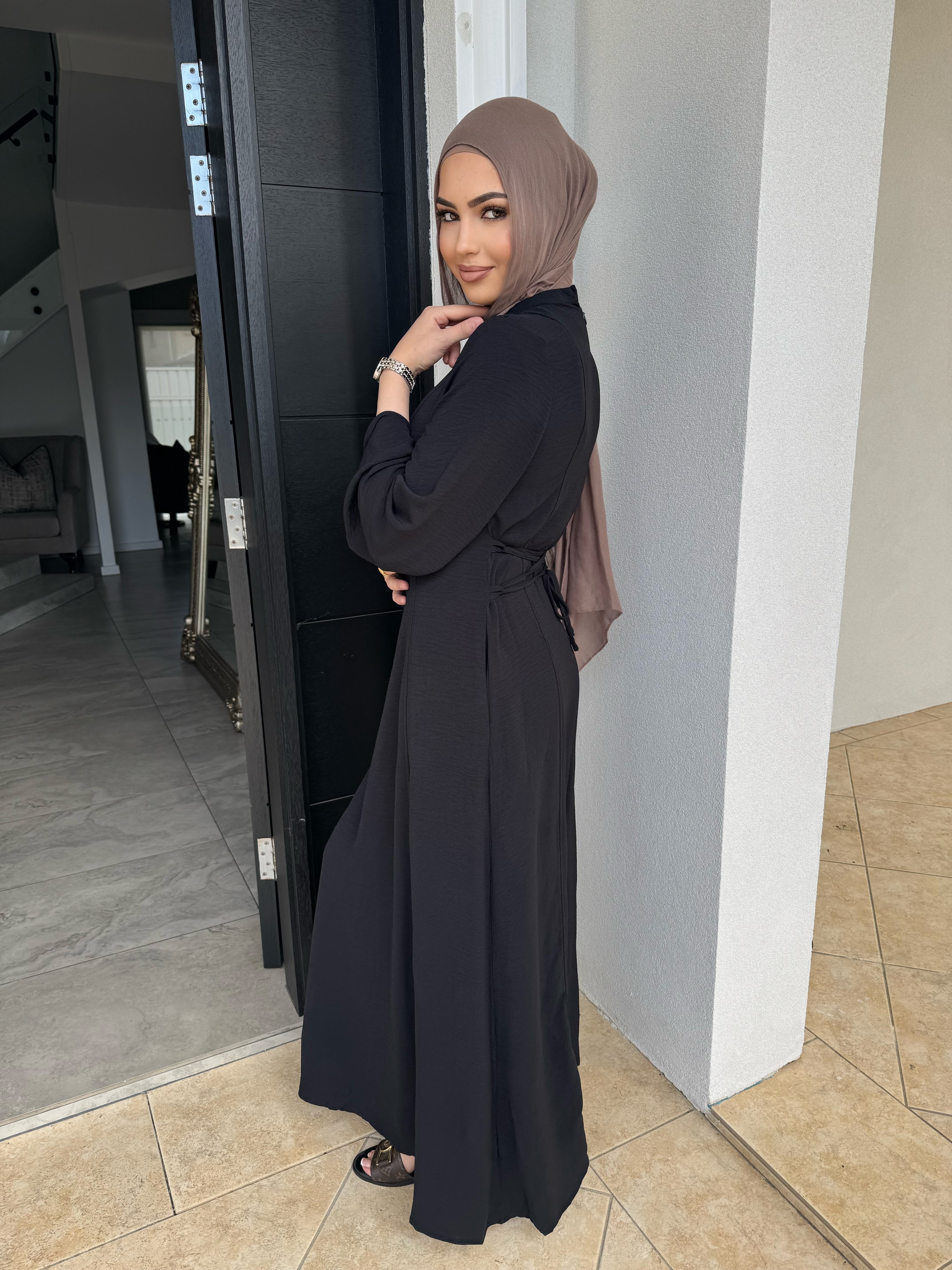 The back has an elegant tie feature and can be adjusted to suit the cinched waist line.