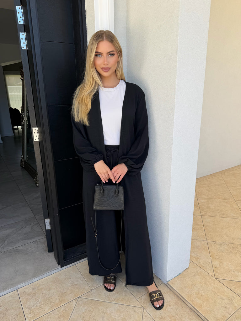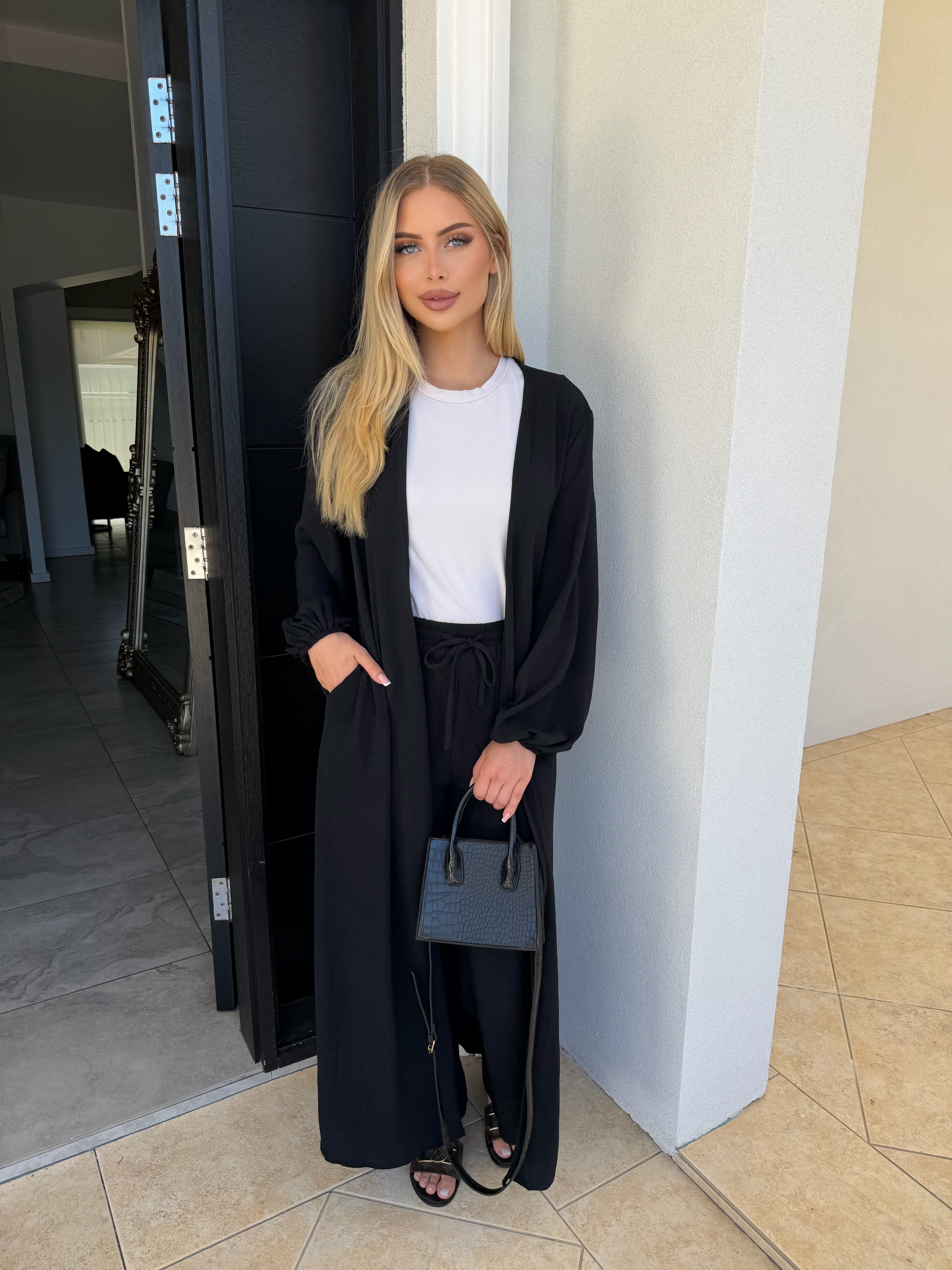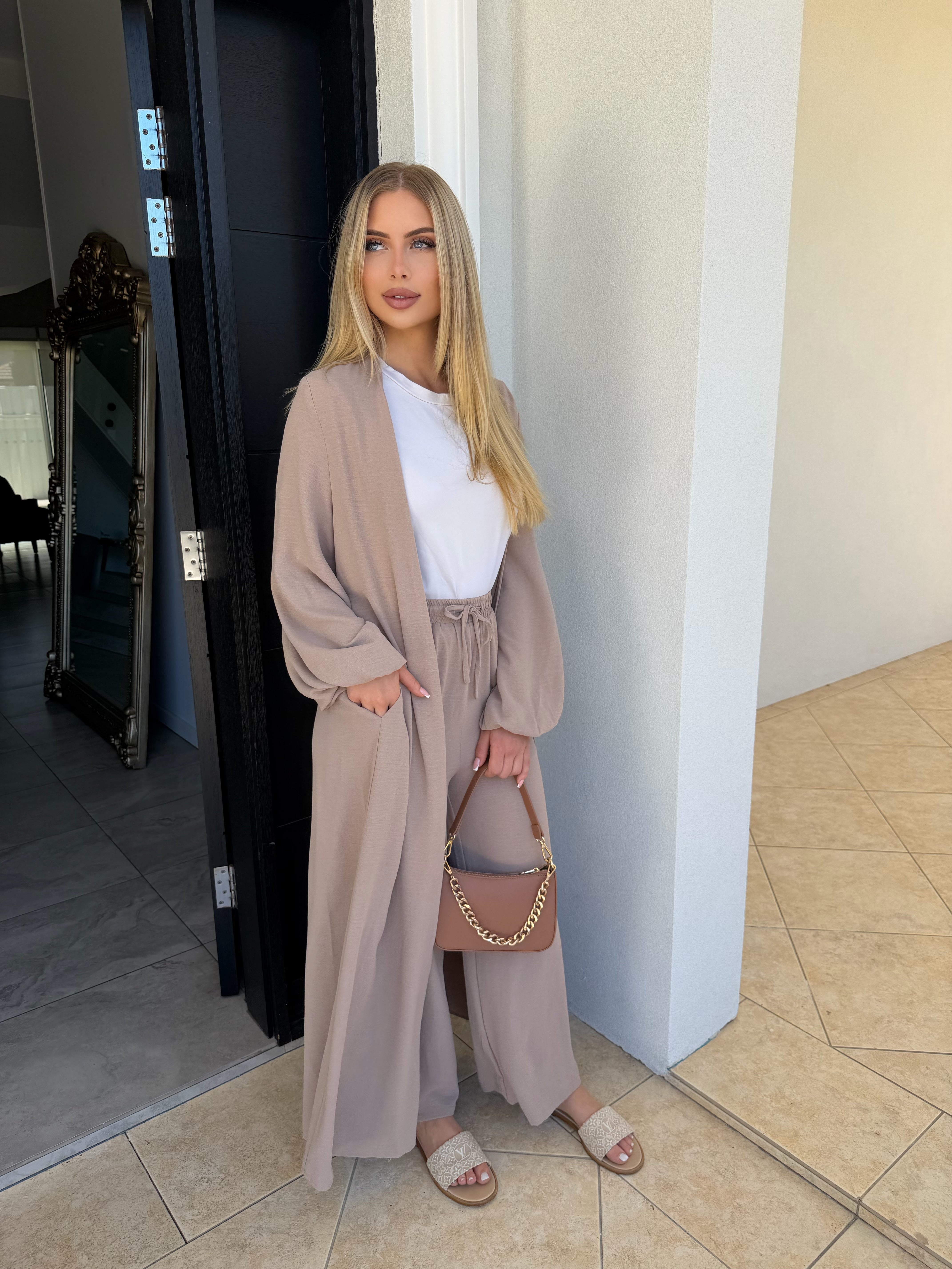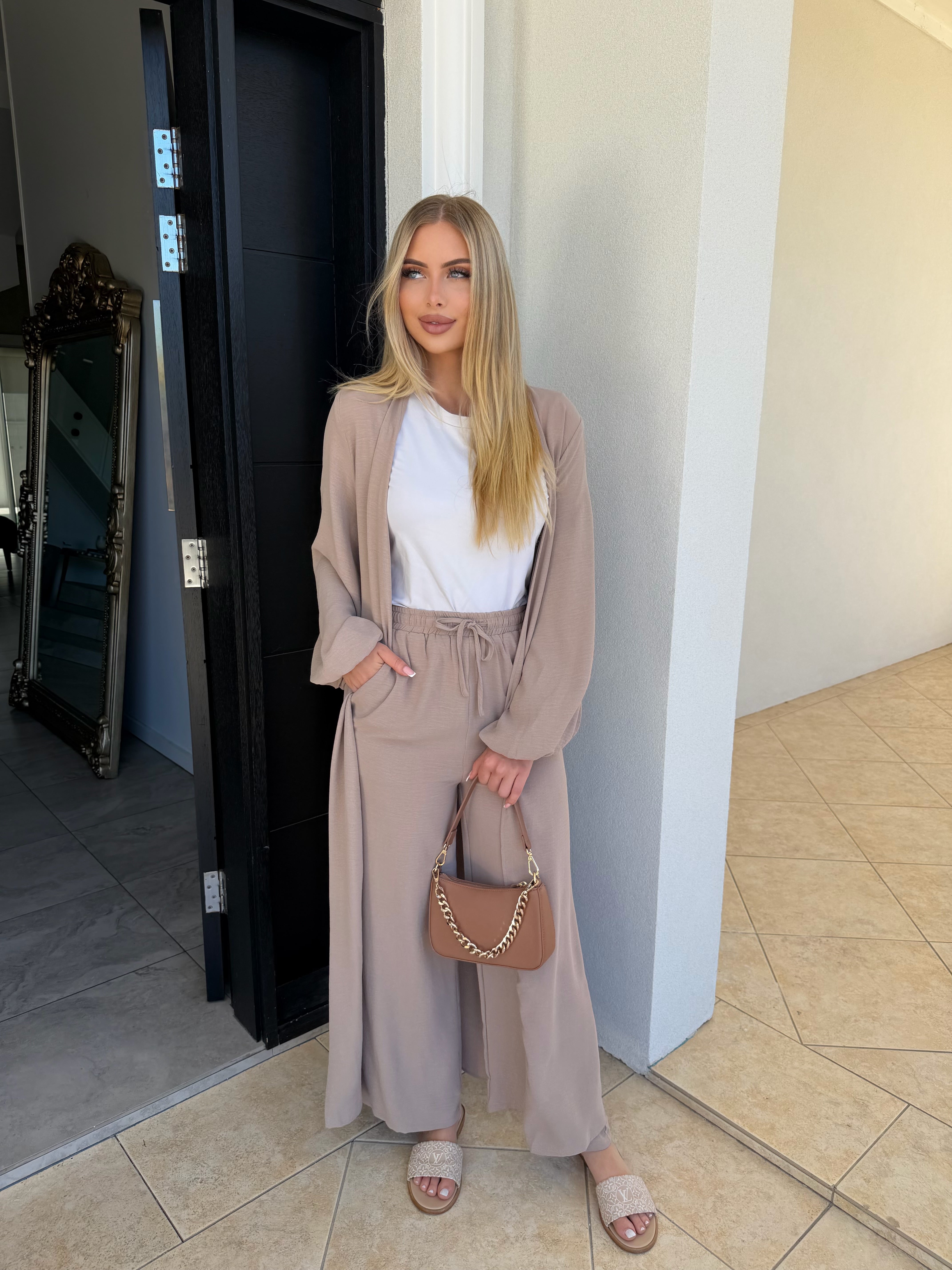 The causal pants and cardigan set